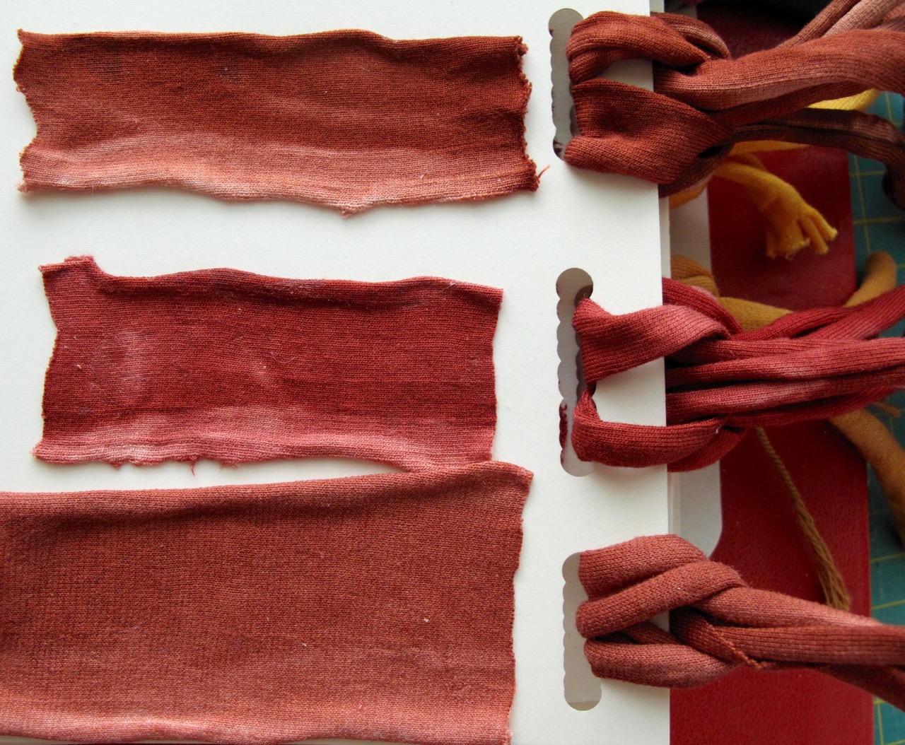 Värjäsin isomman erän, jotta näen paremmin miten väri kulkee isommassa määrässä. Kuvassa tämä näyttää aivan liian punaiselta. En kelpuuttanut vieläkään.